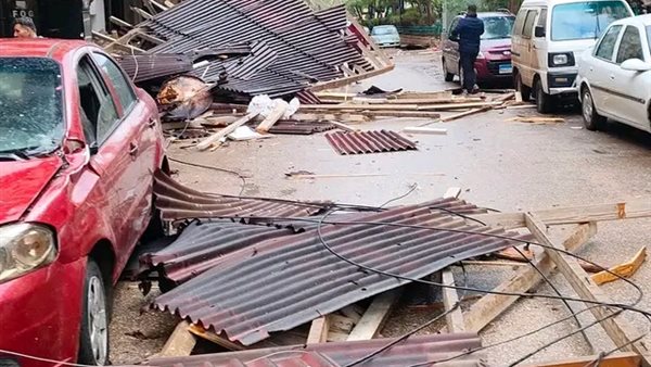 وأضاف أن تطاير الصاج والأخشاب تسبب في حدوث تلفيات متفاوتة في 7 سيارات كانت متوقفة في الشارع ولافتة محل، مؤكدًا أن الحادث لم يسفر عن وقوع إصابات أو خسائر بشرية، وجرى اتخاذ الإجراءات القانونية اللازمة.