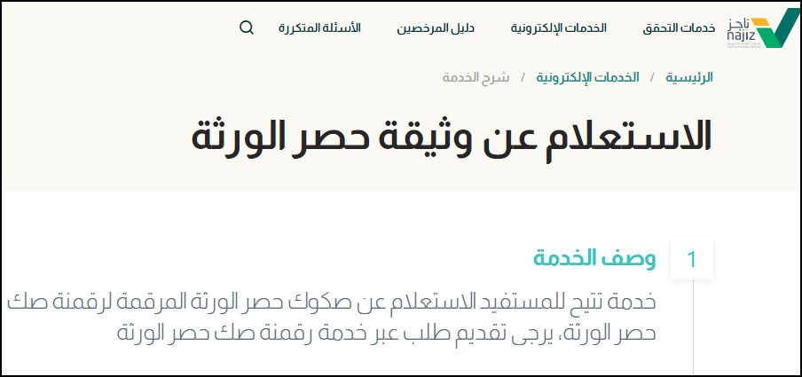 - ادخل إلى خدمة (الاستعلام عن وثيقة حصر الورثة).