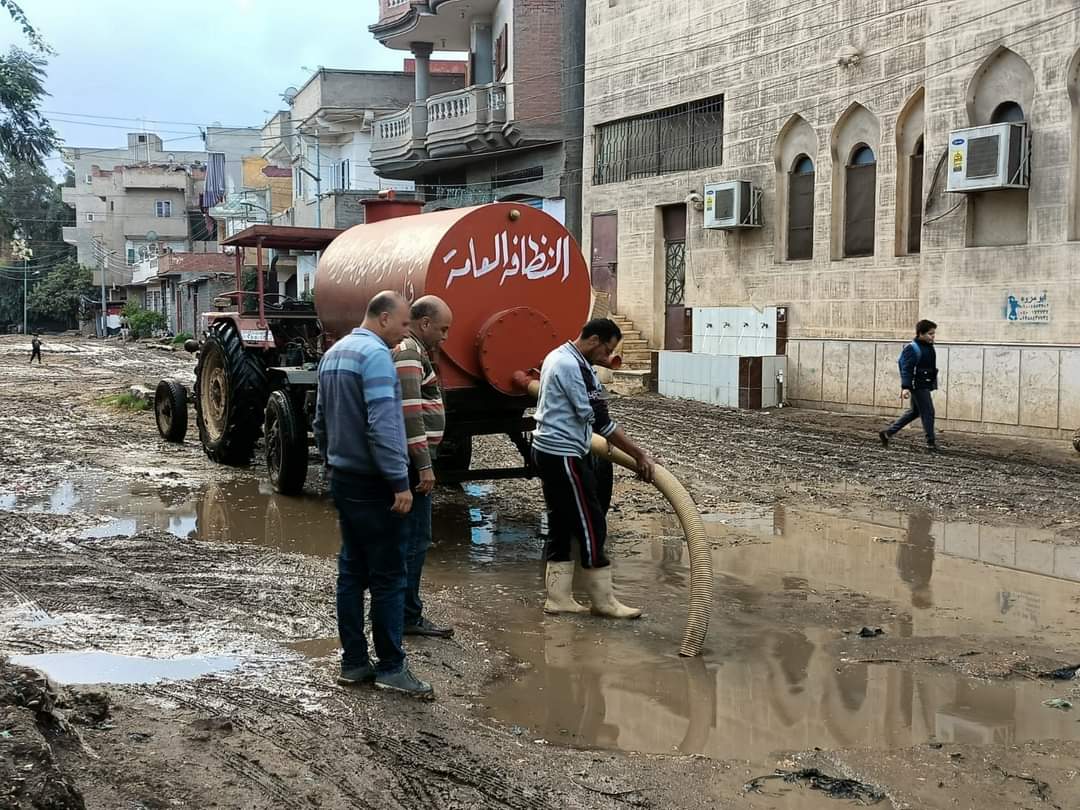 استمرار كسح مياه الأمطار على مدار اليوم لحين انتهاء موجة الطقس السيئ بكفر الشيخ