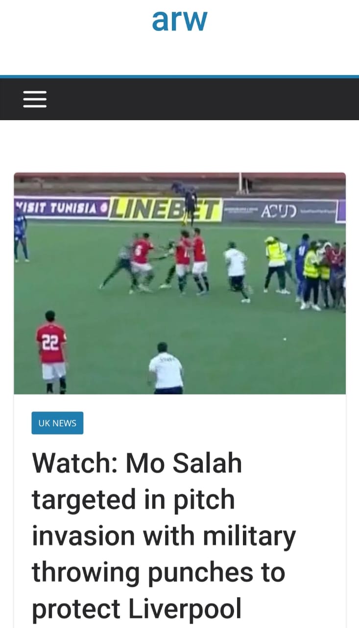 وقالت شبكة arw، إن جماهير مباراة مصر وسيراليون في تصفيات إفريقيا المؤهلة للمونديال والتي أقيمت في دولة ليبريا قد اقتحمت المباراة وأوقفتها من أجل محمد صلاح والاقتراب من اللاعب الذي يقدم مسيرة كبيرة في أوروبا مع فريق ليفربول الإنجليزي.