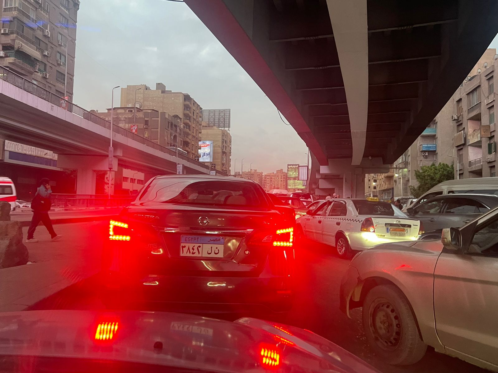تكدس وشلل مروري بطلعة المحور من ميدان لبنان بالجيزة