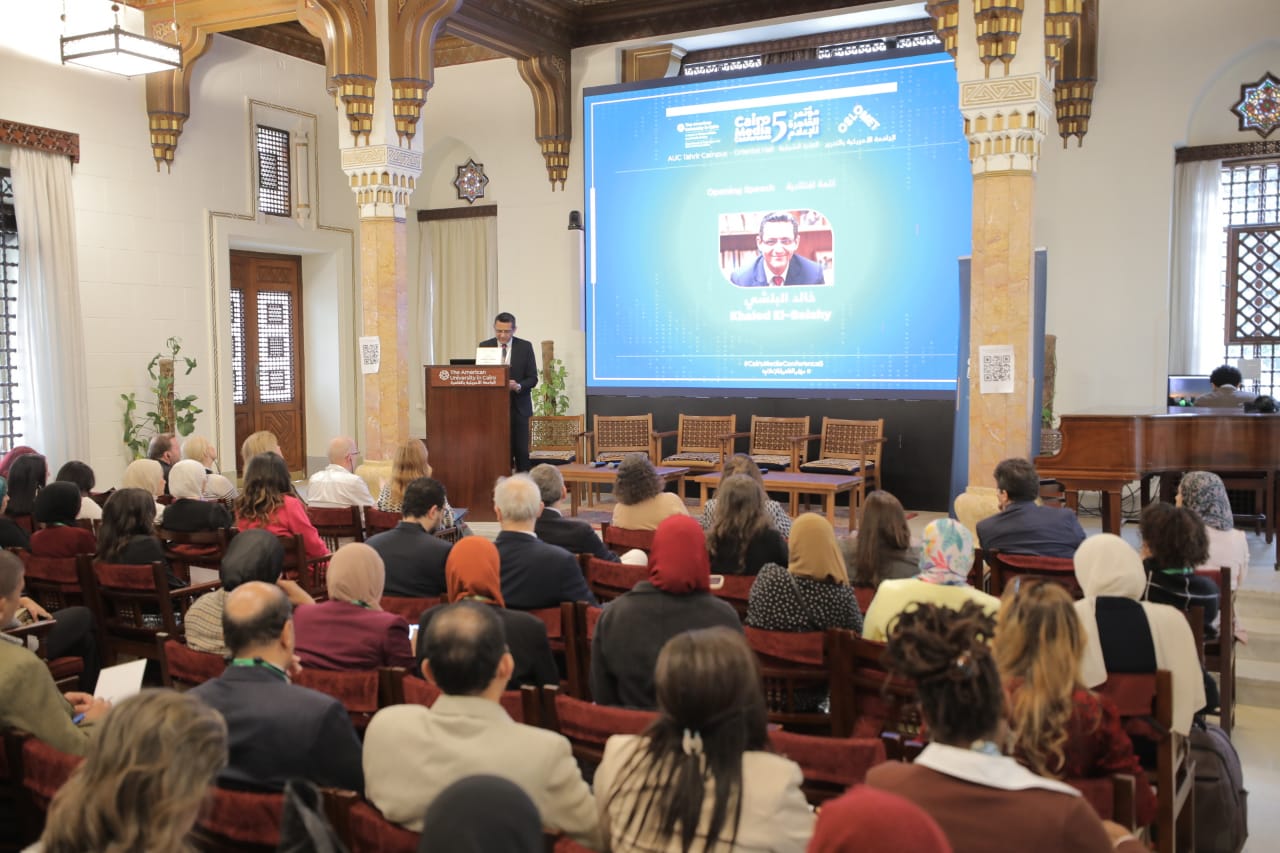 ونظم قسم الصحافة والإعلام بالجامعة الأمريكية بالقاهرة اليوم بالشراكة مع المركز الدولي للصحافة والإعلام JMIC- جامعة أوسلو متروبوليتان بالنرويج OSLO MET لمؤتمر القاهرة الخامس للإعلام.