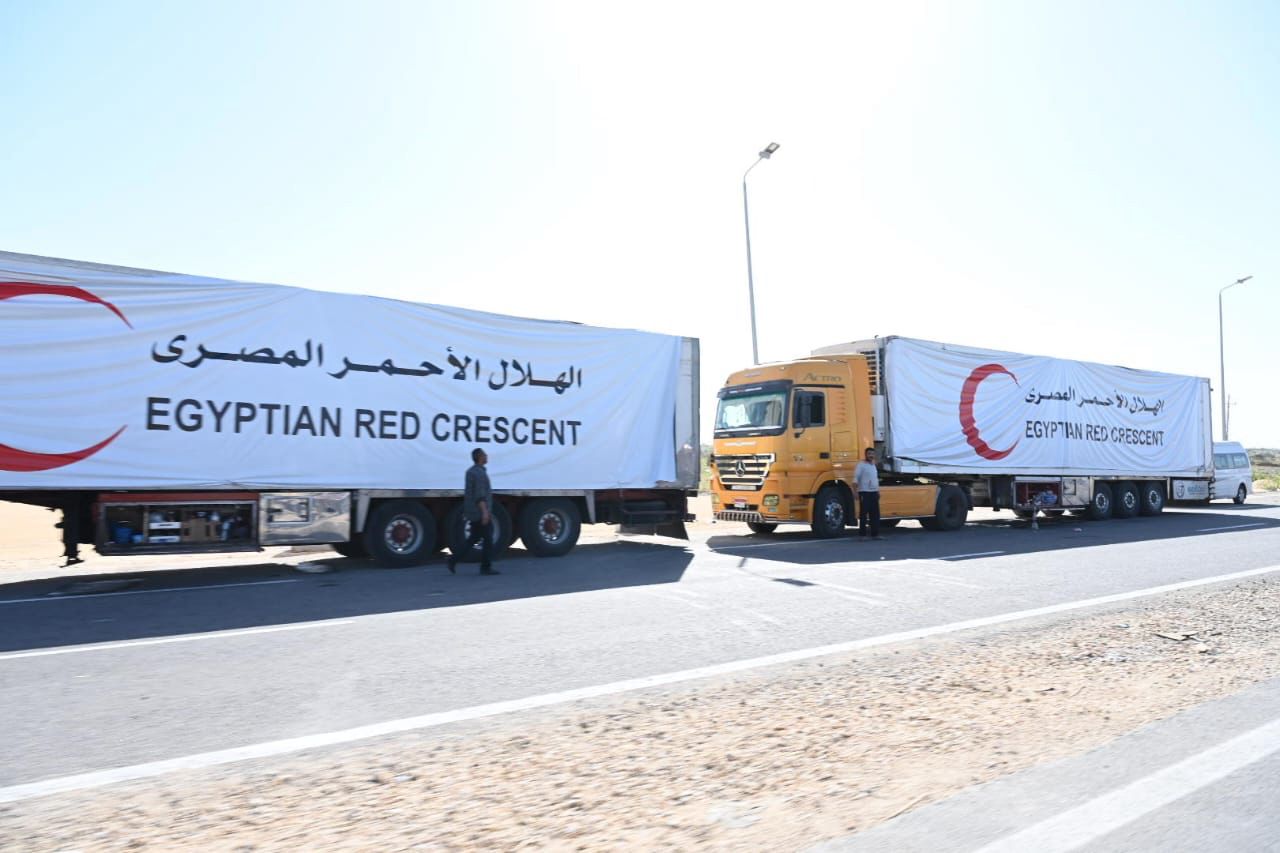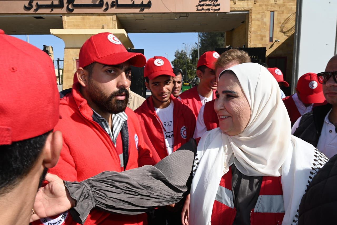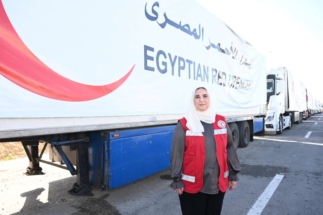 وزيرة التضامن تتفقد قوافل الهلال الأحمر بمعبر رفح لدعم غزة