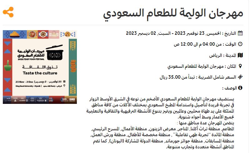 سعر تذكرة دخول مهرجان الوليمة للطعام السعودي