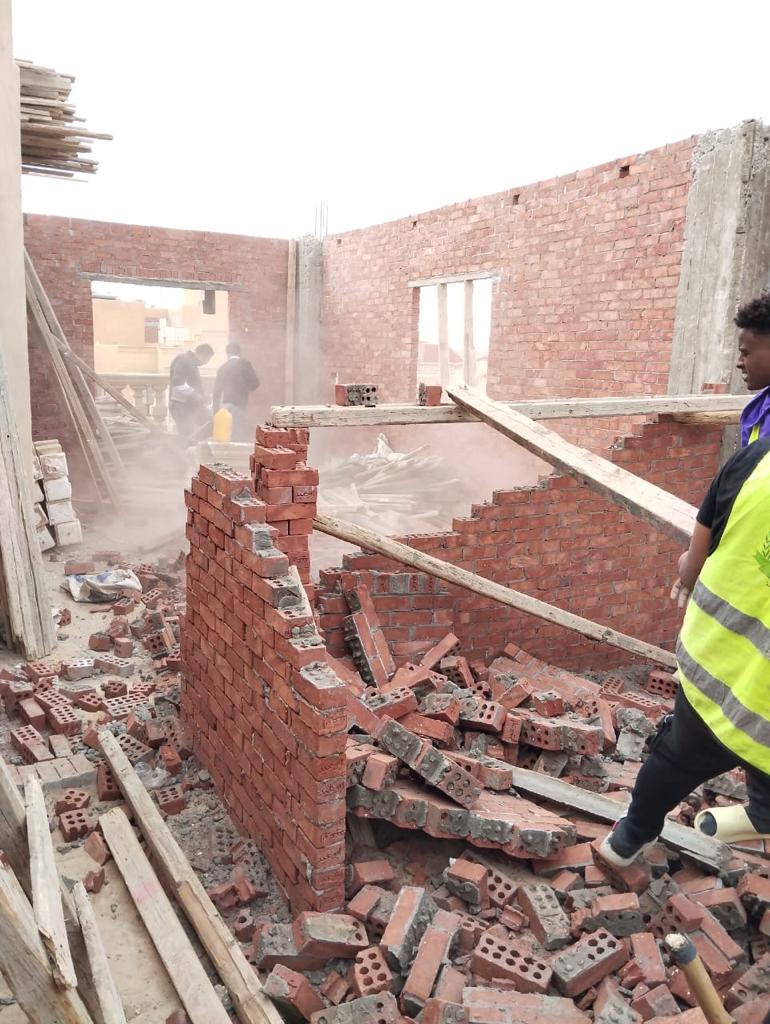 قال النجار، إنه تم تنفيذ عدة حملات مكثفة لإزالة مخالفات البناء استهدفت القطاع الشمالي، وأسفرت عن إزالة زيادة النسبة البنائية لمسطح غرف السطح بالمخالفة للاشتراطات بالقطعة رقم 250 منطقة التوسعات الشمالية حي الـ 2000 قطعة، وكذا المنطقة العمرانية الثانية إزالة المباني المخالفة بالقطعتين رقم 18 و15 فضلا عن إزالة زيادة عن النسبة البنائية بكمبوند المتحدة عمارة رقم 7.
