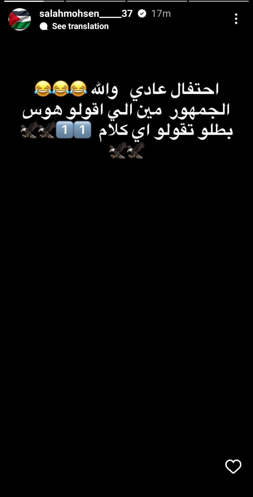 وقال صلاح محسن عبر حسابه الشخصي على موقع التواصل الاجتماعي إنستجرام: احتفال عادي والله الجمهور مين اللي أقوله هوس بطلوا تقولوا أي كلام.