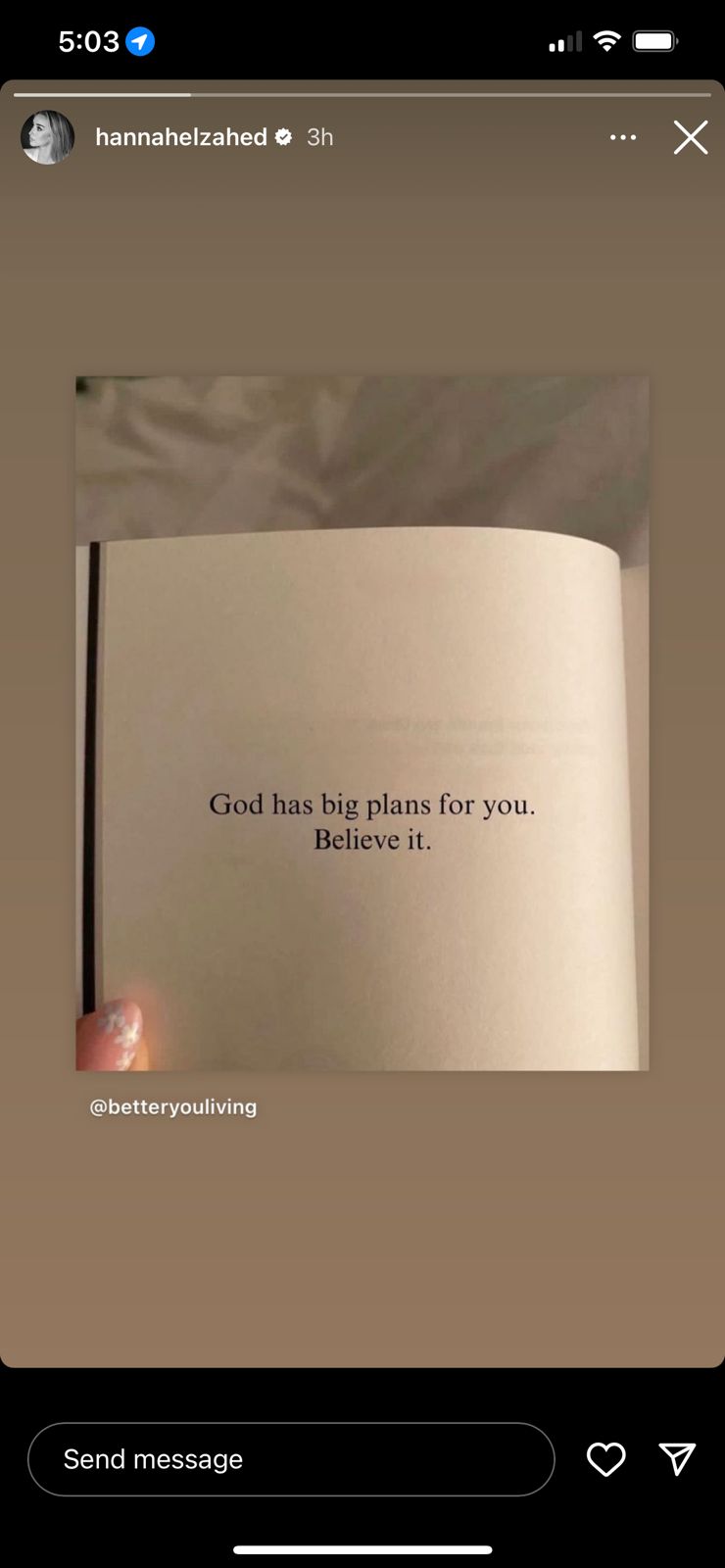 ونشرت هنا الزاهد على حسابها الرسمي بـ انستجرام منشورًا عبر خاصية الأستوري معلقة فيه: الله لديه الخطط الكبيرة بالنسبة لك صدق ذلك.