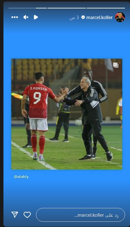 وأعاد مارسيل كولر نشر صورته مع لاعب الفريق صلاح محسن، والتي نشرتها صفحة الأهلي الرسمية على الحساب الرسمي عبر انستجرام.