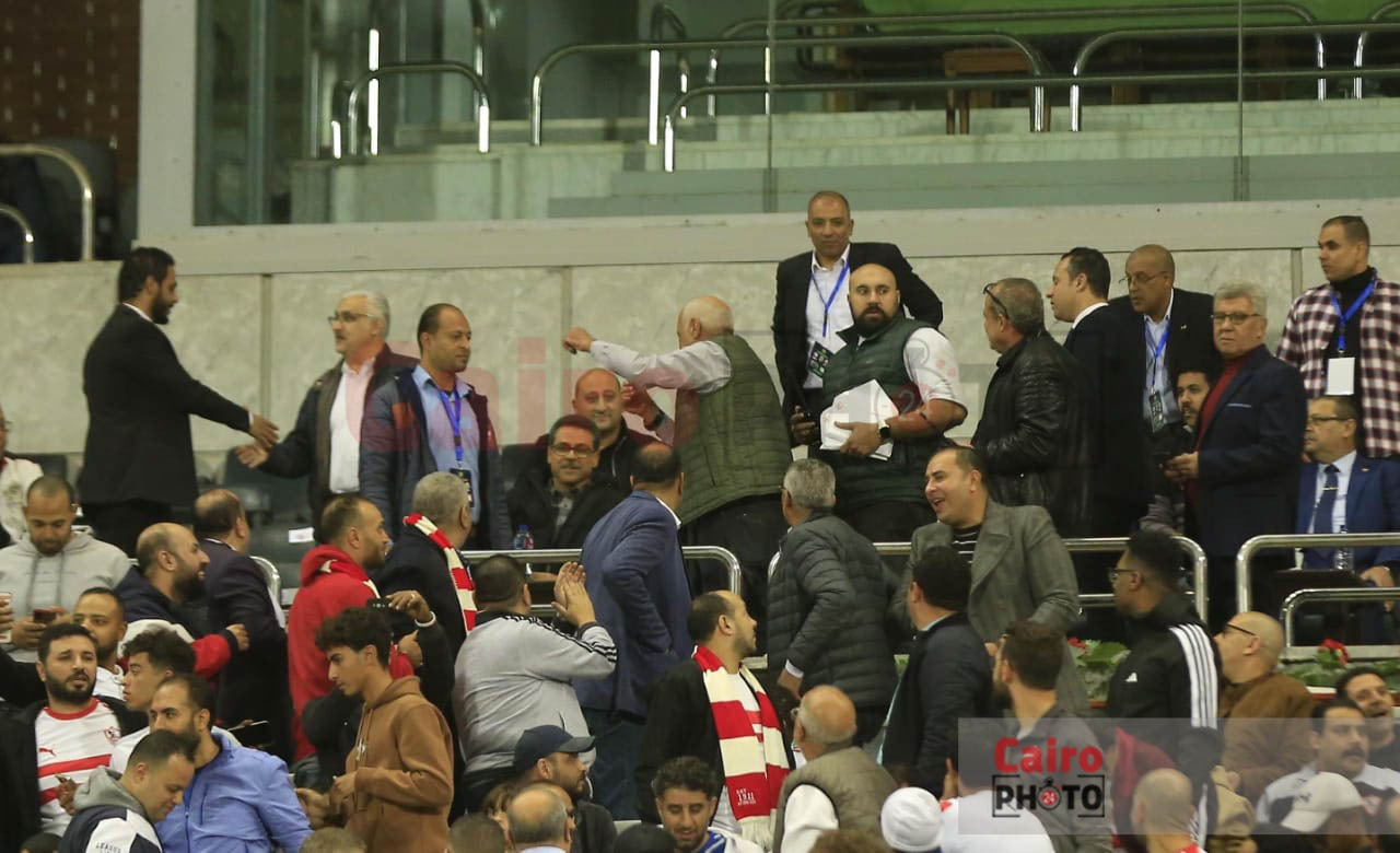 وحرصت الجماهير المتواجدة في مدرجات ستاد برج العرب، على توجيه التحية لـ حسين لبيب رئيس نادي الزمالك.