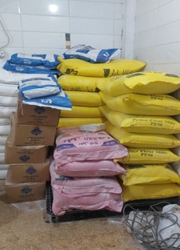 وكشف البيان الأمني العُثور بداخل المصنع على 2،550 طن مواد غذائية، عسل جلوكوز، نشا، لبن بودرة، شوكولاتة قوالب 1،050 طن دقيق – كمية من زيت الطعام.