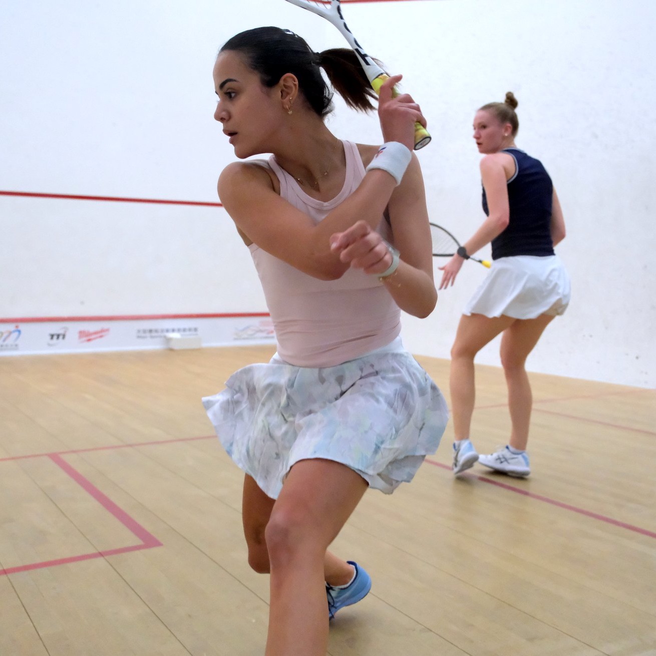 وفازت سنا إبراهيم على لاعبة سويسرا بنتيجة 3 أشواط نظيفة في مباراة استمرت 23 دقيقة فقط، في الوقت الذي استطاعت فيه زينة مكاوي من الانتصار على بطلة فرنسا بنتيجة 3-0.