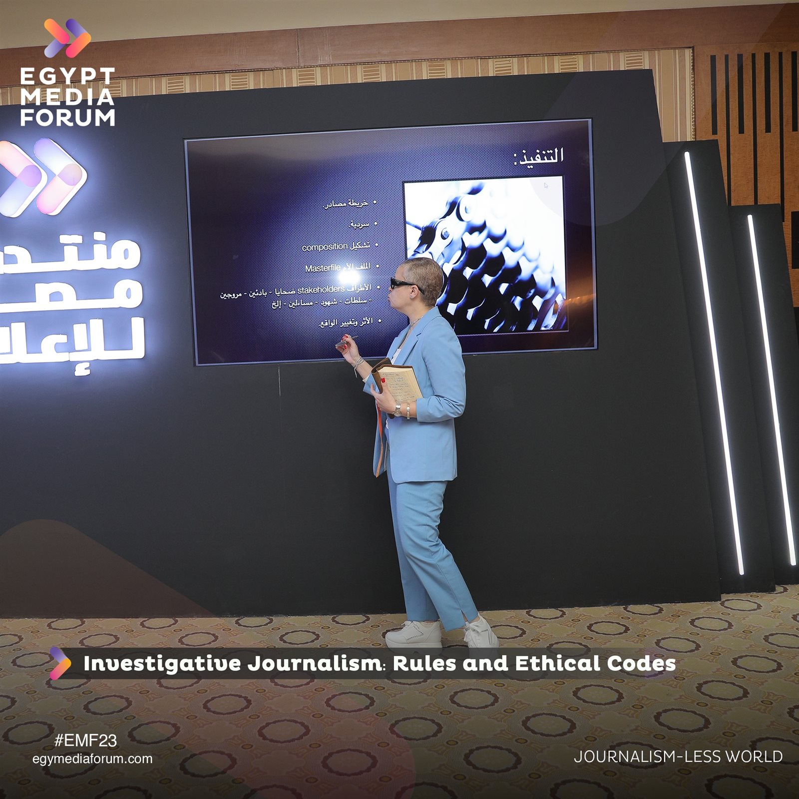 ظهور قنديل جاء خلال محاضرتها ورشة عن التحقيقات الصحفية بعنوان "التحقيقات الصحفية.. دليل مهني وأخلاقي" ضمن فعاليات منتدى مصر للإعلام، حيث تعد رشا قنديل، أستاذ بالجامعة الأمريكية بالقاهرة.