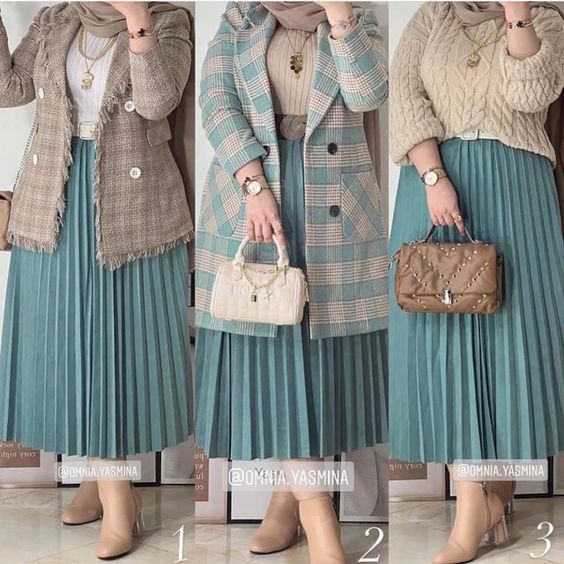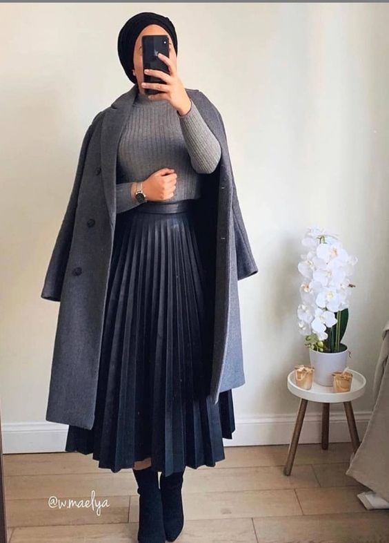 لن تترددي عن اقتناء الجيب البليسيه والبالطو الطويل مع الوشاح حول الرقبة وبلوفر خفيف في الأسفل، فهي أكثر الطلات رواجًا في الشتاء.