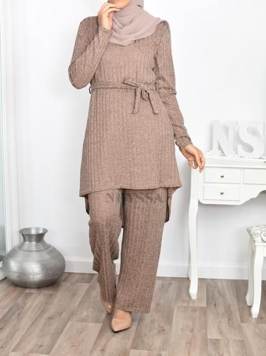 راجت في موضة 2024 البدلة الشتوية ذات الكارديجان الطويل والبنطال الواسع، والتي تصنع من الصوف والأقمشة الشتوية مع ألوان دافئة وحزام على الخصر.