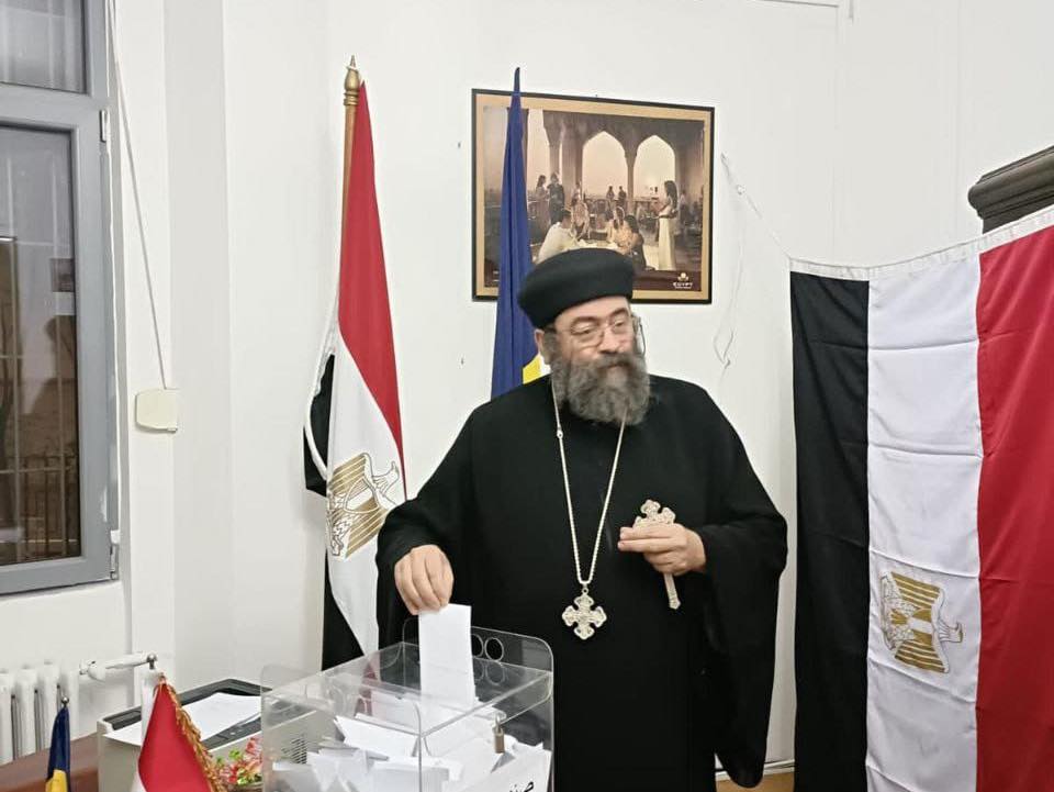 وتصدر القمص مينا تكلا راعي الكنيسة القبطية الأرثوذكسية "مارمينا" برومانيا طابور الناخبين، حيث حرص على الإدلاء بصوته الانتخابي، والتقاط صورة مع المسئولين في السفارة المصرية.