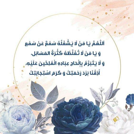 "يا مَن لا يَشغَلُه سَمْعٌ عن سَمْعٍ، يا مَن لا تُغْلِطُه المَسائِلُ، يا مَن لا يَتبَرَّمُ بإلحاحِ المُلِحِّينَ، أَذِقْني بَرْدَ عَفْوِكَ، وحَلاوةَ رَحمَتِكَ".