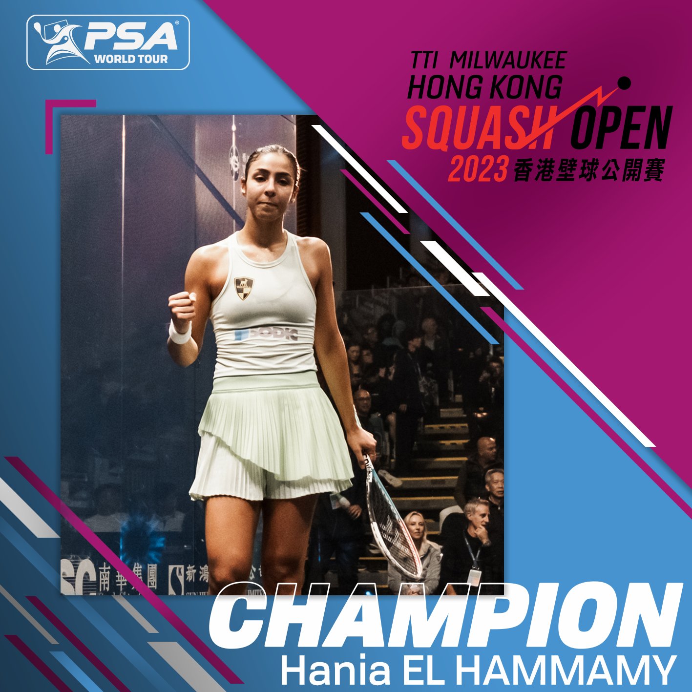 وكانت هانيا الحمامي فازت بنفس اللقب في هونج كونج في 2022، على حساب البطلة نور الشربيني، فيما خسرت الحمامي لقبين هذا الموسم في نهائي أمريكا المفتوحة وكأس جراسهوبر، أمام نور الشربيني أيضًا.