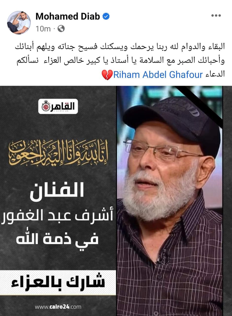 نعي دياب لأشرف عبد الغفور