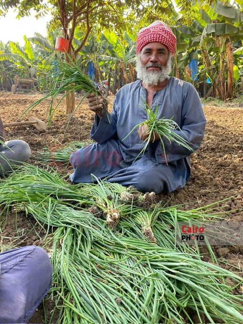وقال شوقي: أن البصل الخزين يأخذ من 5 إلي 6 أشهر ويتم رية من مرتين إلي 3 خلال أشهر زراعتة والاهم أن يتم عزق وتنضيف الأرض يدويا قبل الزراعة.