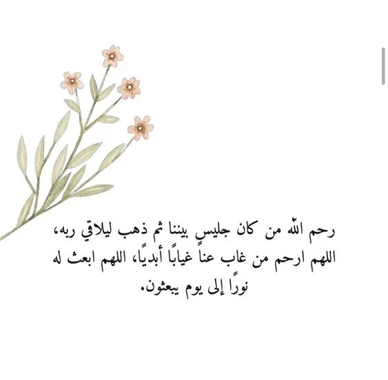 | اللهم ارحمه بقدر ضعفنا أمام غيابه وحزن قلوبنا بفراقه اللهم ارحمه واجمعنا به في جناتك |