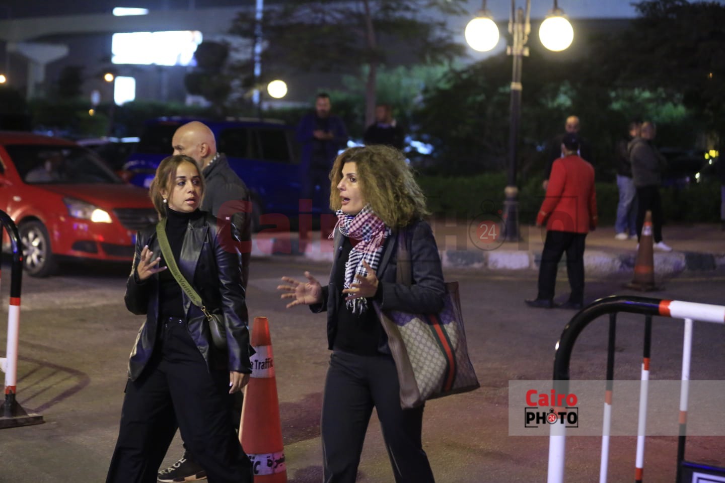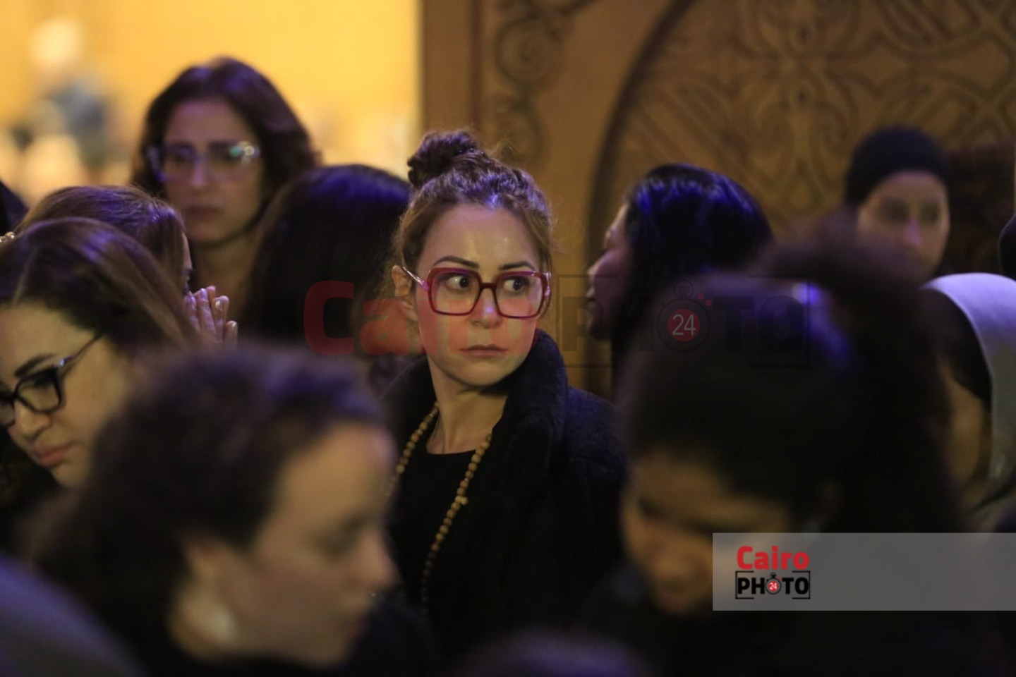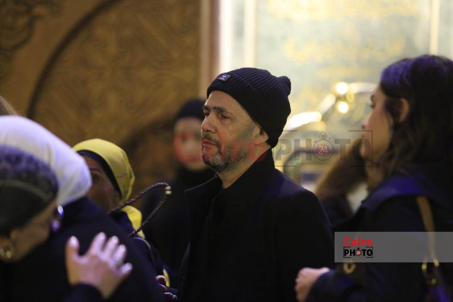 تامر حبيب ومنة شلبي بالسبحة ودنيا عبد العزيز بالشال الفلسطيني.. أبرز لقطات عزاء أشرف عبد الغفور | صور