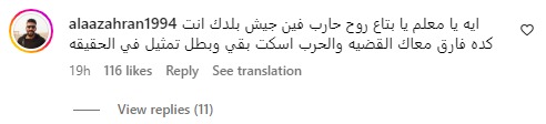 وجاءت تعليقات الجمهور على الفيديو، كالتالي: ما أنت بترقص أهو وفرحان، عامل فيها بطل ليه يا رمضان، ناس في دنيا وناس في دنيا تانية، حسبي الله ونعم الوكيل، اللهم انصر إخواتنا في فلسطين، إيه يامعلم يابتاع روح حارب فين جيش بلدك، أنت كده فارق معاك القضية والحرب اسكت بقى، وبطل تمثيل في الحقيقة، كله تمثيل ولا احترام لدماء شهداء وأهل غزة.
