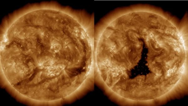 يطلق ثقب عملاق في الغلاف الجوي للشمس حجمه أكبر من 60 كرة أرضية، ويزيد حجمه عن 5 أضعاف قطر كوكب المشتري العنان لرياح شمسية قوية تهب عبر النظام الشمسي، وفقًا لـ Science Alert.