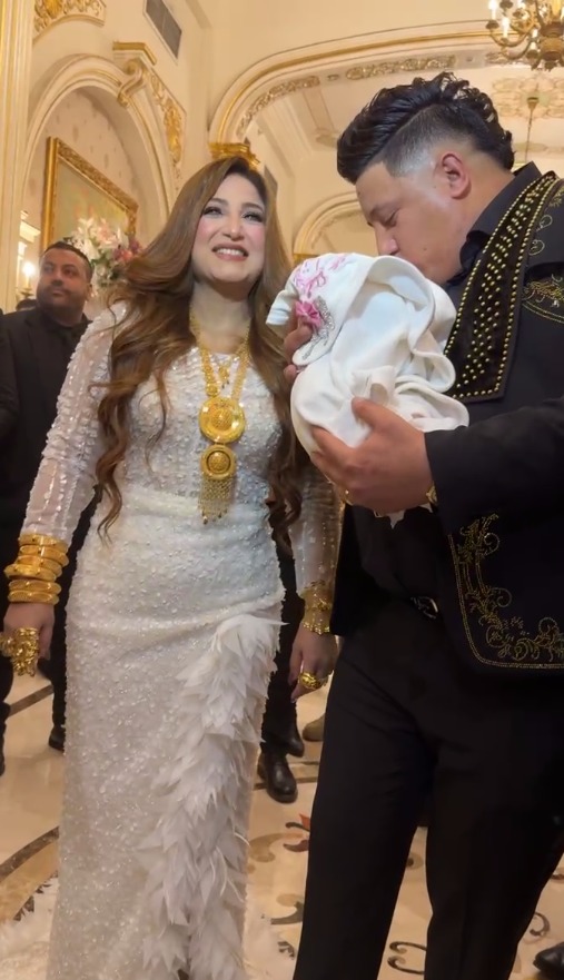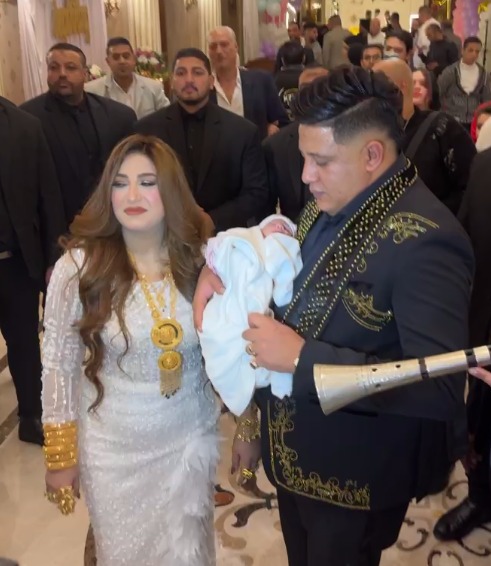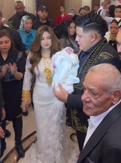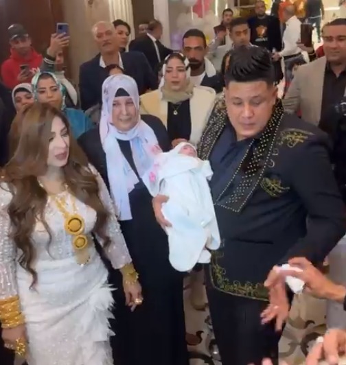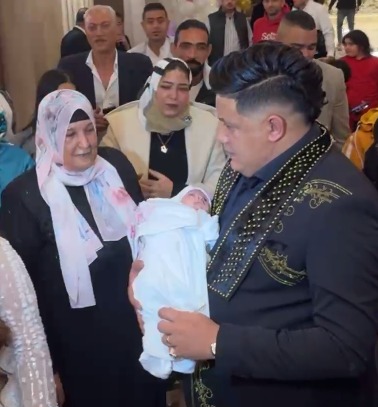 حمو بيكا يحتفل بـ سبوع ابنته تاج في إحدى قاعات الأفراح ويغني لفلسطين | صور وفيديو
