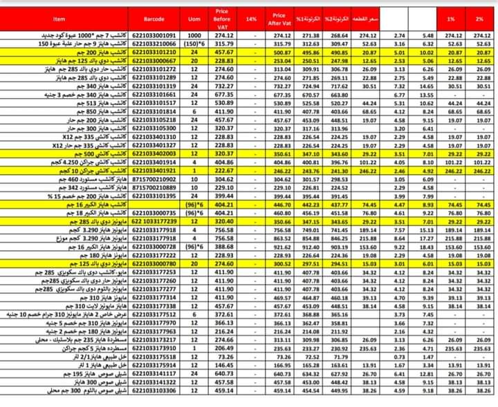 ورفعت الشركة سعر خل هاينز وزن 1 لتر إلى حوالي 12 جنيهًا، وسجلت أسعار شيلي صوص 300 جرام هاينز نحو 38 جنيهًا والعبوة وزن 195 جرام حوالي 27 جنيهًا.