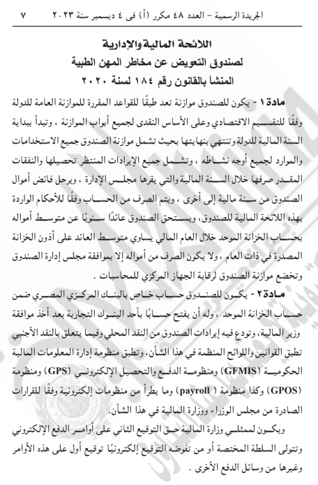 ونص قرار رئيس الوزراء، على أن يعمل بأحكام اللائحة المالية والإدارية لصندوق التعويض عن مخاطر المهن