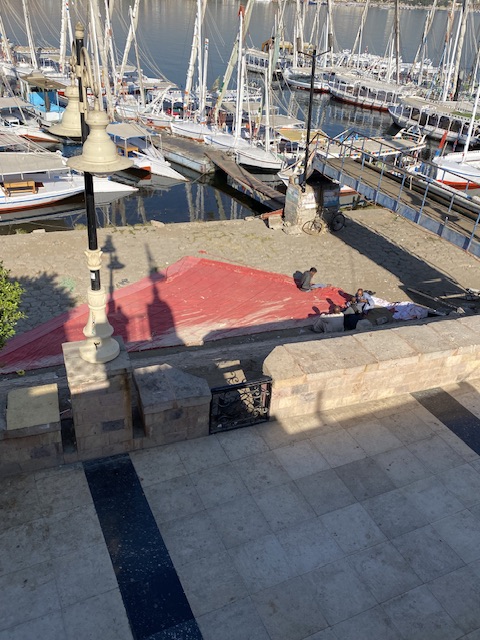 يجلس منهمكًا بالخيط والإبرة وهو الرجل الستيني ليوصل الخيوط بعضها البعض بالأقمشة و"يدكك" فيها الحبال ليصنع أشرعة المراكب بالأقصر والتى تزين نيلها وهى المعروفة باسم الفلوكة، حيث متعة السائحين في رحلات نيلية يقبلون عليها بشغف صباحا وعند الغروب.