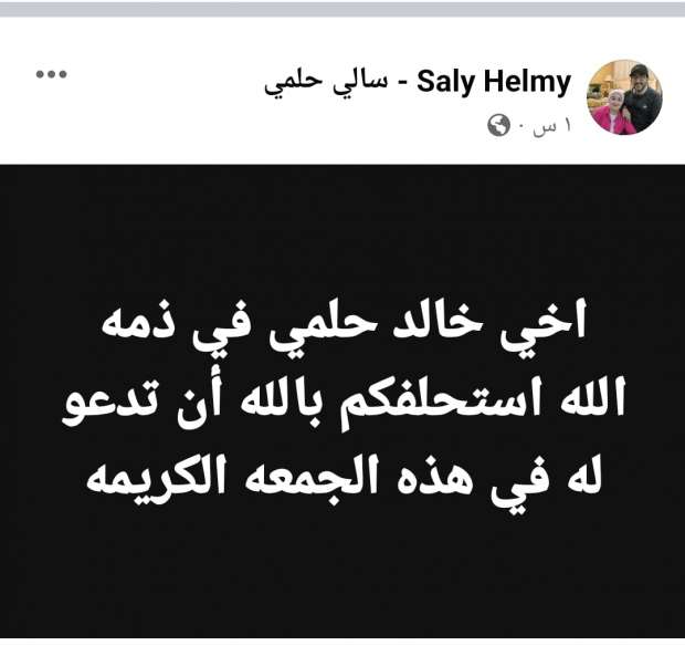 وكتبت سالي حلمي عبر حسابها الشخصي بموقع فيس بوك: أخي خالد حلمي في ذمة الله، استحلفكم بالله أن تدعو له في هذه الجمعة الكريمة.