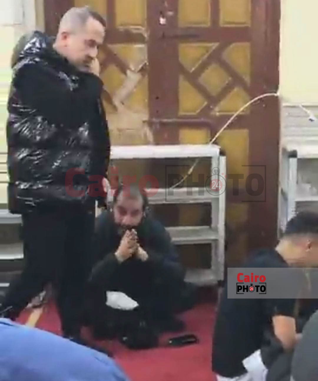 وجلس الفنان احمد حلمى بجوار الجثمان في المسجد ودموع الحزن تملأ وجهه في وداعه الأخير لشقيقه الأكبر.