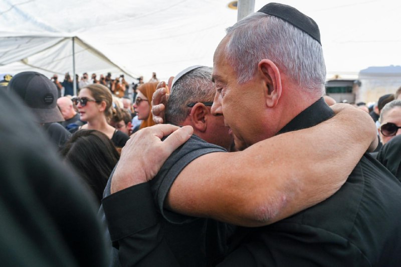 بكاء نتنياهو في جنازة نجل عضو مجلس الحرب الإسرائيلي | صور