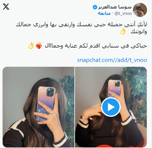 كما نشرت العديد من الصفحات الفيديو المتداول، مشيرين إلى أنه لا يرجع إلى الناشطة السعودية شوشا عبد العزيز، فيما أوضح حساب الـ سناب شات أنه يحمل فقط اسم شوشا عبد العزيز.