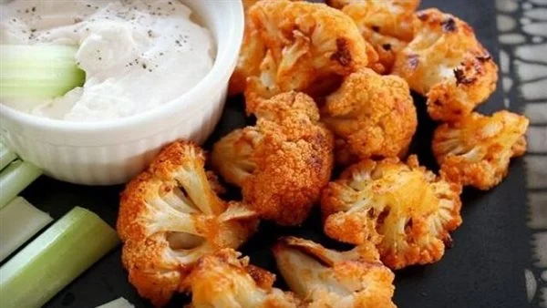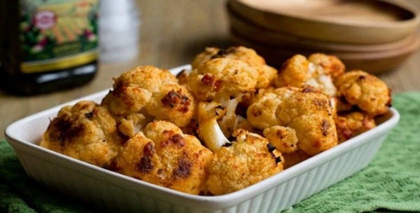 - قدمي القرنبيط مع صوص الزبادي والخبر المحمص.