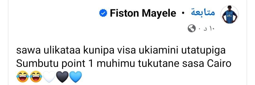 وقال ماييلي عبر حسابه الرسمي بموقع التواصل الاجتماعي انسنجرام مخاطبا مسئولي صن داونز: رفضتم إعطائي تأشيرة الدخول لجنوب إفريقيا لأنكم اعتقدتم بذلك أنكم ستهزموننا، ولكن حصلنا على نقطة مهمة في عقر داركم، لنتقابل في القاهرة.