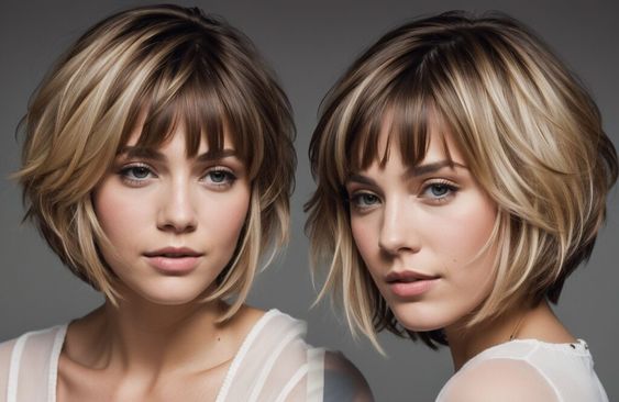 2- قصات الشعر القصيرة: تتناسب قصات الشعر القصيرة أيضًا مع الوجه البيضاوي، ويمكن أن تساعد في إبراز جمال هذا الشكل. من بين قصات الشعر القصيرة المناسبة للوجه البيضاوي: