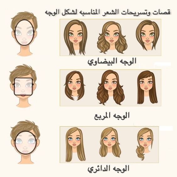 يتحدد اختيار قصات الشعر حسب شكل الوجه للنساء، وفيما يلي بعض قصات الشعر المناسبة لأشكال الوجه المختلفة: