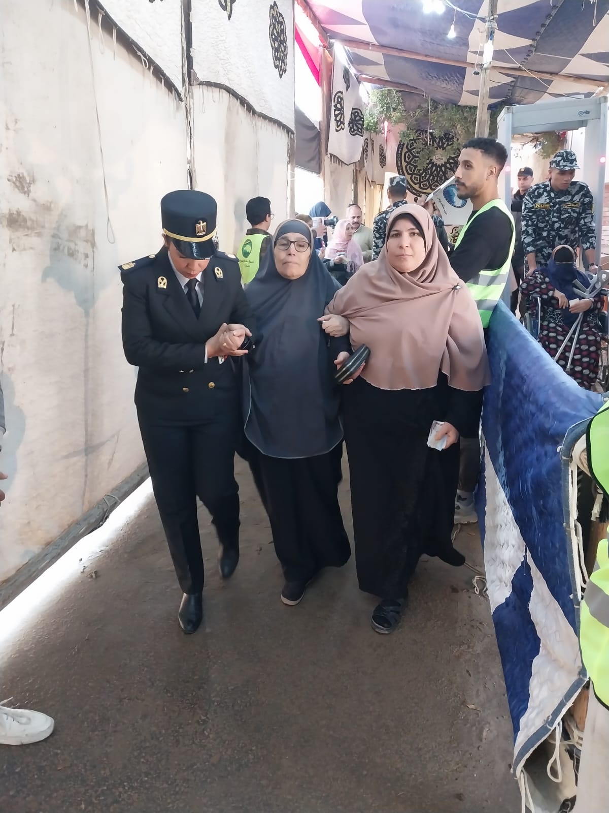 يأتي ذلك إيمانًا وترسيخًا للدور المجتمعي للوزارة قامت قوات الشرطة وعناصرها النسائية بمحيط كافة اللجان الانتخابية بمساعدة وتسهيل عملية الاقتراع للناخبين خاصةً كبار السن وذوي الاحتياجات الخاصة، والذي لاقى استحسان المواطنين.