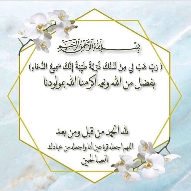 | اللهم بارك في مولودكم نسأل الله له صلاح الدنيا والآخرة |