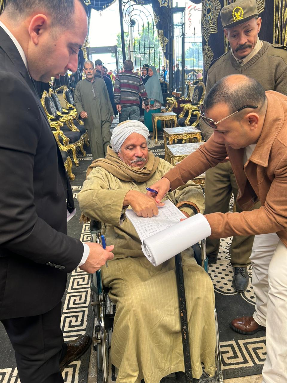 وحمل القاضي دفتر الأسماء وذهب للناخب المسن ليمضي ثم يدلي بصوته في الانتخابات الرئاسية.