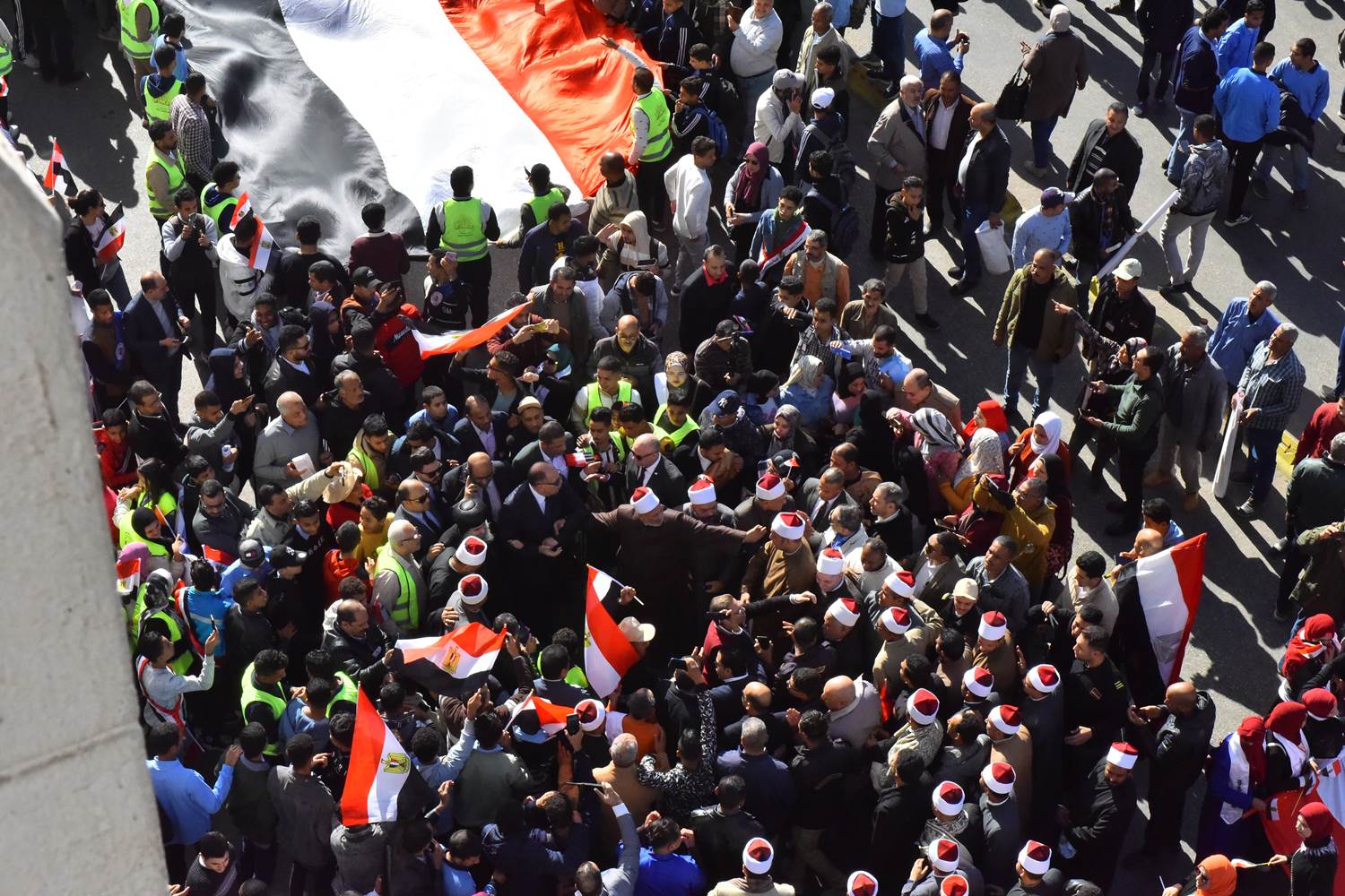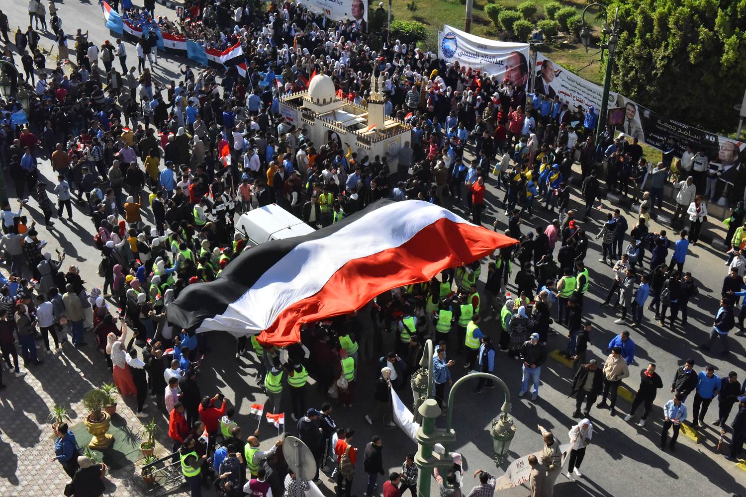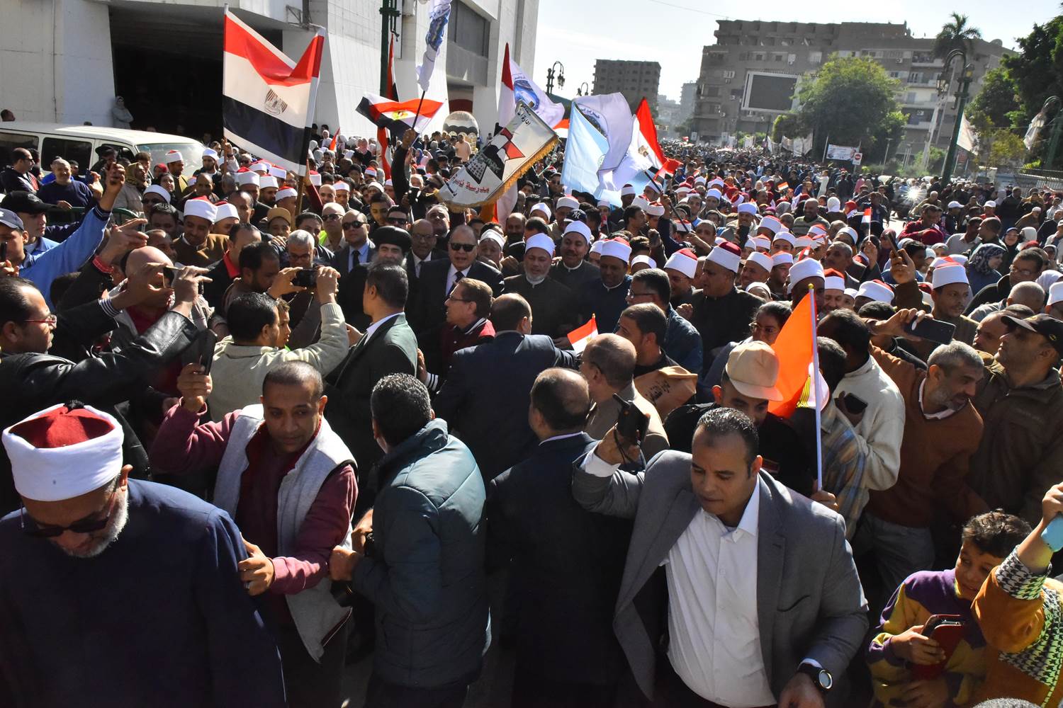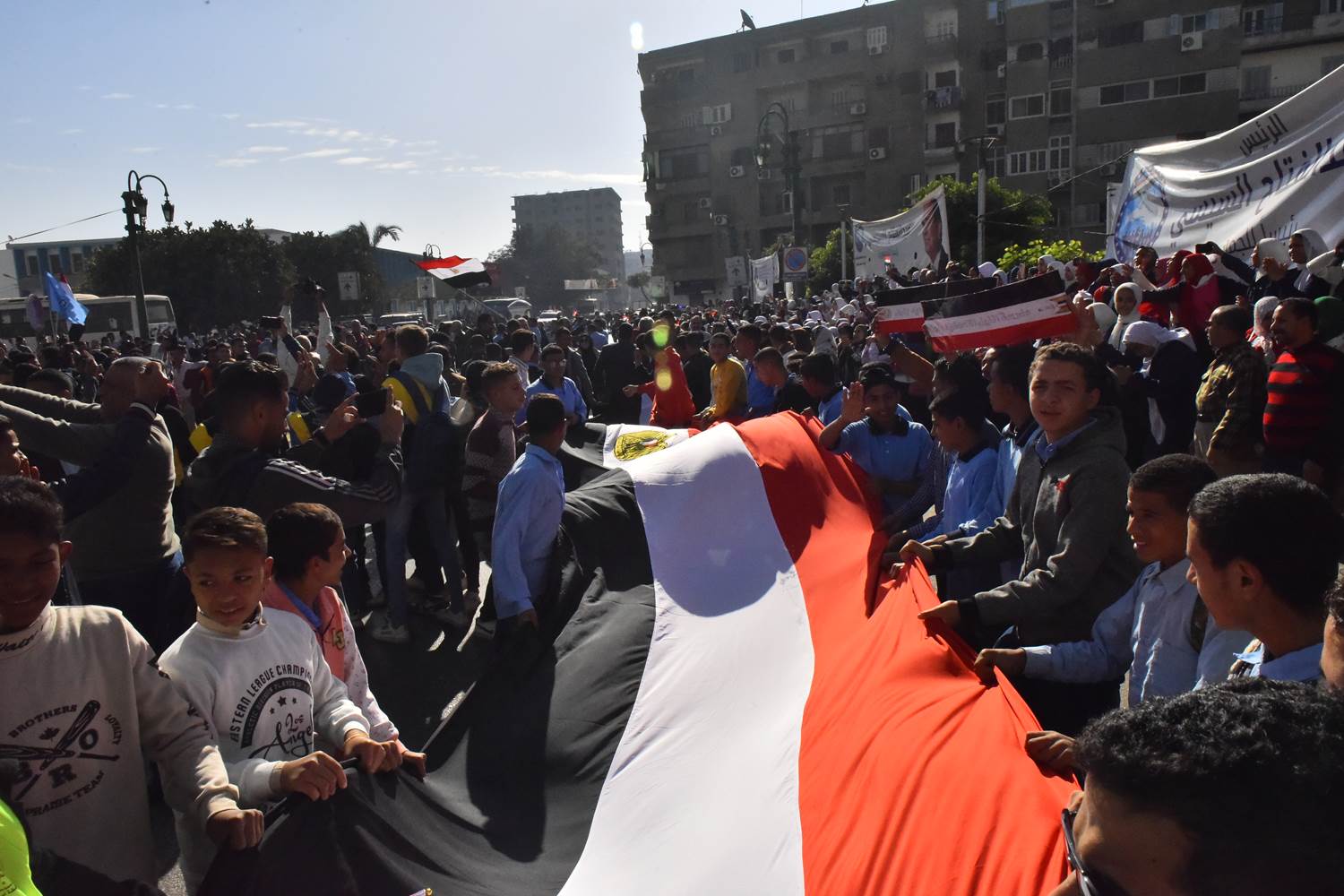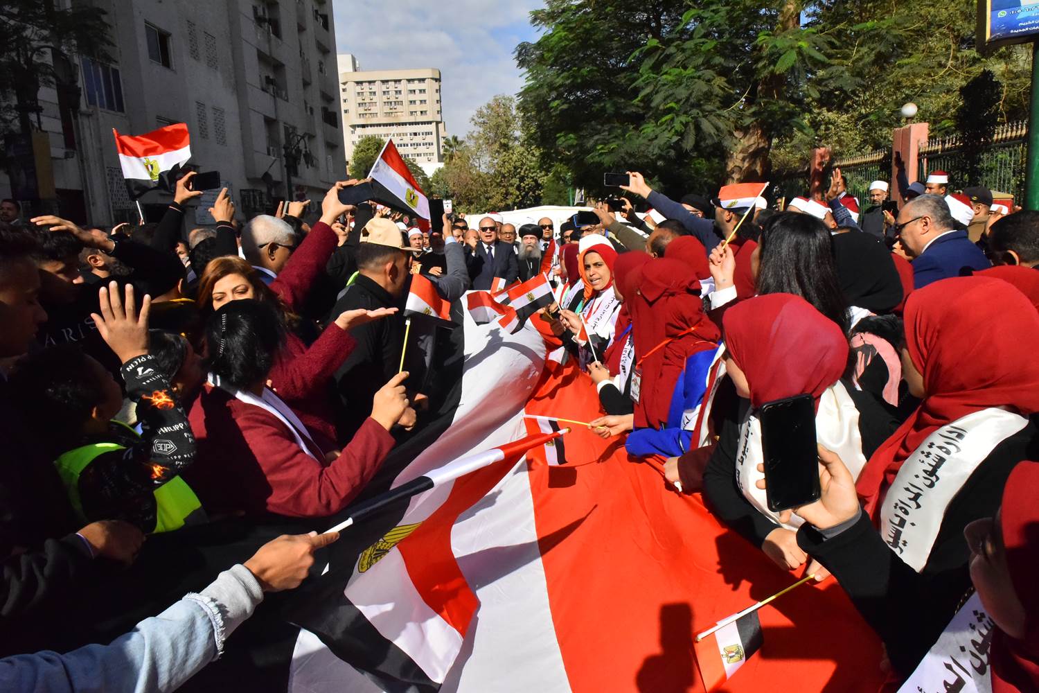 كما وجه المحافظ الشكر لرجال الدين والكيانات الشابية والطلاب المشاركين في المسيرة ودعم للإنتخابات الرئاسية وحثهم المواطنين على النزول والمشاركة ايمانًا منهم بأهمية حقوقهم السياسية واختيار مسيرة البناء واستكمال التنمية الحقيقية التي تشهدها البلاد، وردد المحافظ معهم النشيد الوطني لجمهورية مصر العربية.