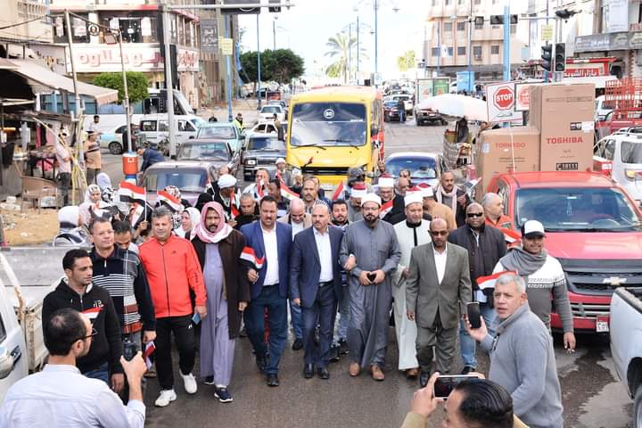 انطلقت مسيرة حاشدة في حب مصر، من أمام ديوان عام محافظة مطروح؛ لحث المواطنين على المشاركة الإيجابية في الانتخابات الرئاسية، والإدلاء بأصواتهم كحق دستوري وواجب وطني، وذلك تزامنا مع اليوم الثالث والأخير للانتخابات الرئاسية وسط أجواء احتفالية بالعرس الانتخابي، رافعين أعلام مصر بعدد من الشوارع الرئيسية وسط مدينة مرسى مطروح.