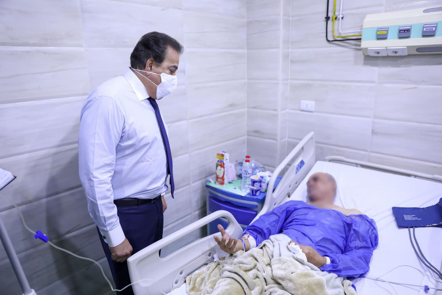 وأضاف «عبدالغفار» أن الوزير استمع من طبيب الرعاية المركزة إلى تقرير بالحالات المحجوزة بالقسم، وعددها 16 حالة واطمأن منه على حالتهم الصحية، موجهًا بتوفير كافة سبل الرعاية الطبية لهم، كما تفقد الوزير وحدة الغسيل الكلوي واطمأن من المرضى وعلى تلقيهم الخدمة الطبية دون أي معوقات.