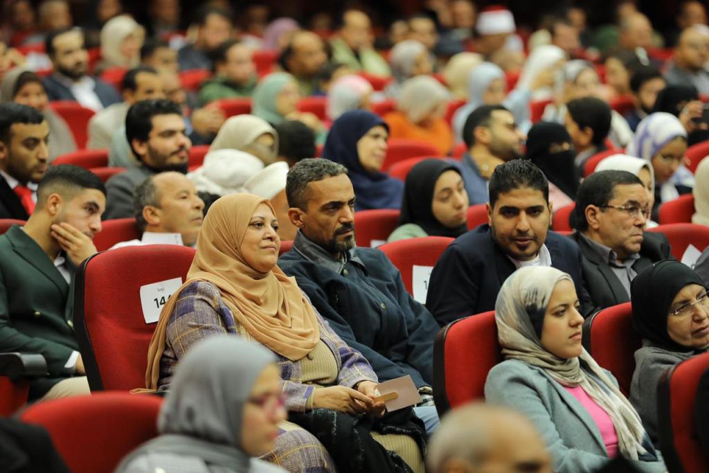 واستطرد: نحن أمام حفلٍ نجني فيه ثمرةَ التَّعبِ والسَّهرِ والآمالِ، وأثقُ تمامًا بأنَّ الخرِّيجين والآباءَ والأمَّهاتِ لتمتلئُ قلوبُهم اليومَ فرحًا وسعادةً، ولكنِّي أدعوكم إلى مزيدٍ من الطُّموحِ، فلا ينبغي أن تتوقَّفَ أحلامُكم عند شهادةِ التَّخرُّجِ، وإنَّما أريدُكم جميعًا أن ترفعوا رايةَ الأزهرِ فتكونوا إضافةً جديدةً في عالمِ «الطِّبِّ الأزهريِّ» إن صحَّت التَّسميةُ، وأن تَسْعَوا للحصولِ على شهادةٍ من اللهِ بخدمةِ النَّاسِ ونفعِهم، فتكونوا من خيرِ النَّاسِ، ألم يقلْ رسولُ اللهِ ﷺ: «خيرُ النَّاسِ أنفعُهم للنَّاسِ»، وأريدُكم أن تجمعوا إلى جنبِ ذلك أن تدْعوا النَّاسَ إلى اللهِ، وتبثُّوا في قلوبِهم الأملَ والرَّجاءَ والتَّفاؤلَ، بعيدًا عن مفرداتِ المرضِ والوجعِ والألمِ واليأسِ والإحباطِ.
