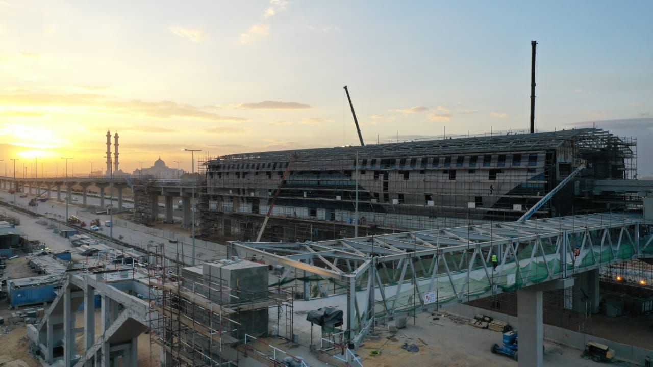 بدأت الجولة بمتابعة اللمسات النهائية لنهو محطة المشير طنطاوي والأعمال التي يتم تنفيذها بالمحطات المختلفة، حيث يجرى تنفيذ أعمال التشطيبات الداخلية والتكيسات الخارجية لها بعد الانتهاء من تنفيذ الهيكل الخرساني والمعدني لها.