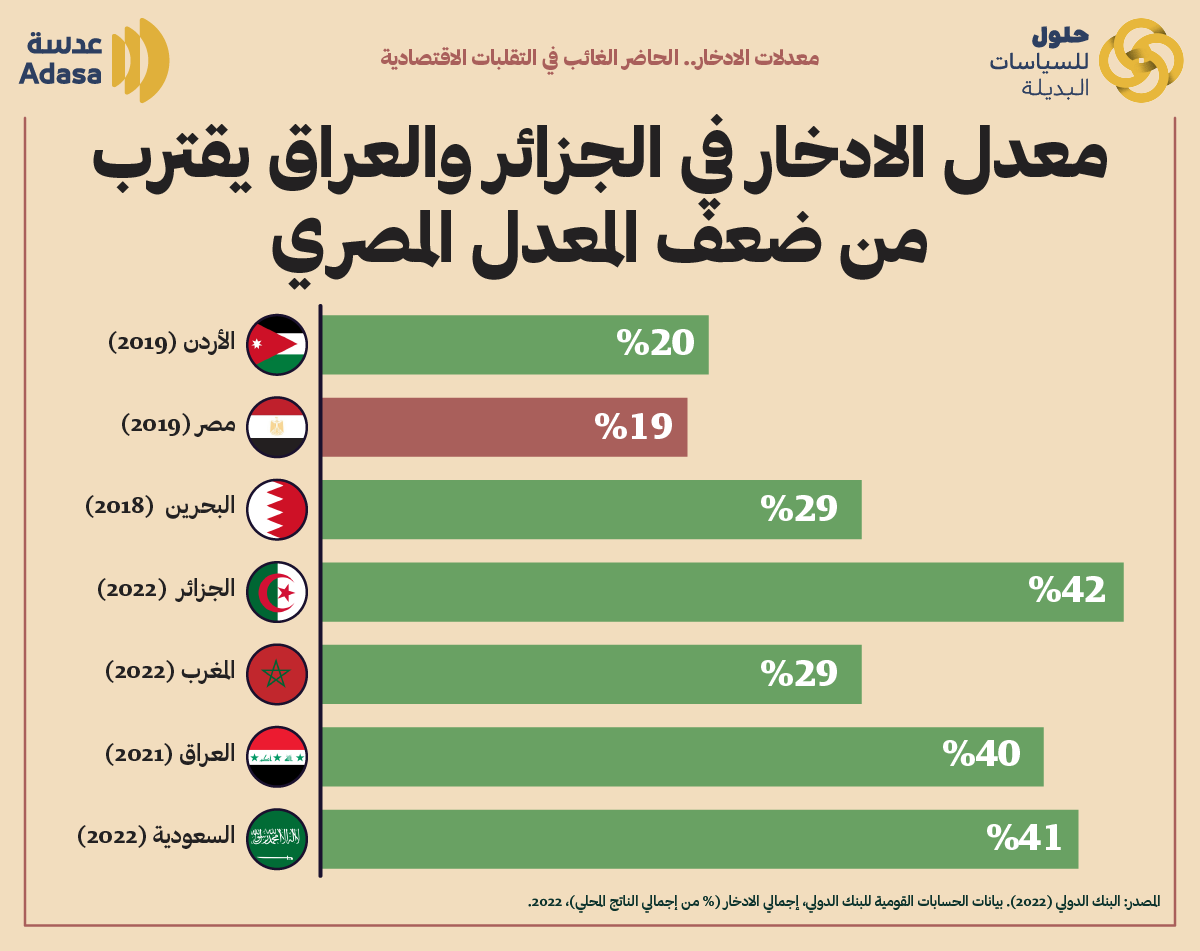 وتشير معدلات الادخار في الذهب والعقارات والمنتجات البنكية إلى وجود فئات قادرة على الاستثمار رغم الوضع الاقتصادي، مثلما حدث وقت أزمة كوفيد-19 في عدد من الدول حيث ارتفعت معدلات الادخار في الطبقات الأغنى وانخفضت لدى الطبقات الأقل دخلًا، ما يشير إلى تأثيرات غير عادلة للأزمات الاقتصادية في طبقات المجتمع وأنماطها الادخارية.