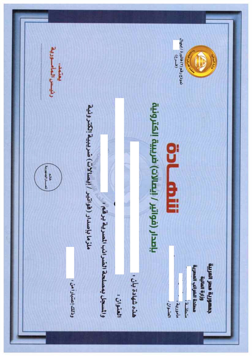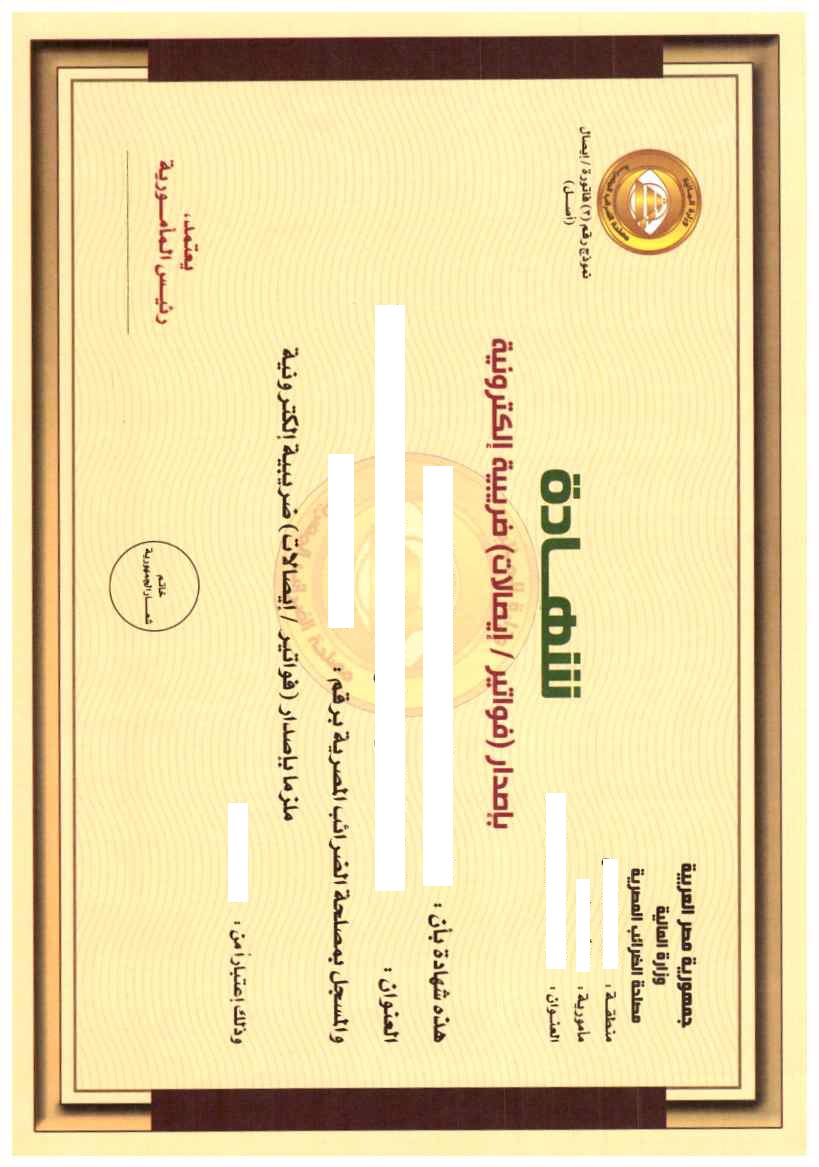 الضرائب تعلن إصدار شهادة التزام الممولين أو المسجلين الملتزمين بـ الفواتير والإيصالات الإلكترونية