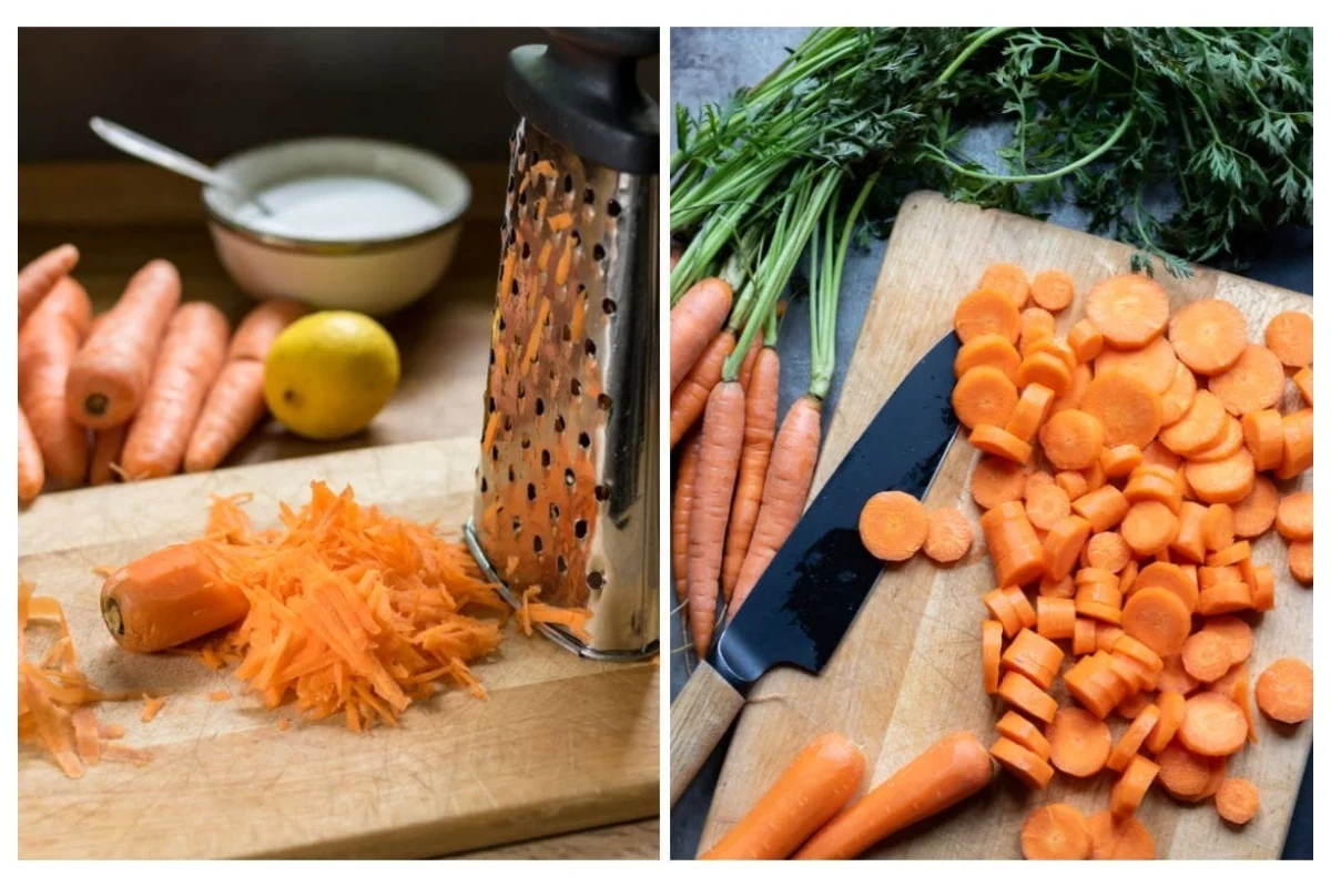 - قطعي الجزر إلى مكعبات صغيرة أو شرائح رقيقة لطهي الجزر بسرعة وتجنب عدم نضج أجزاء تتسبب في عدم تجانس القوام والأحساس بمرارة.
